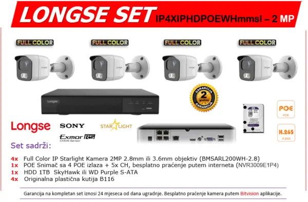 Longse Full Color IP SET IP4XIPHDPOEWHmmsl – 2 MP